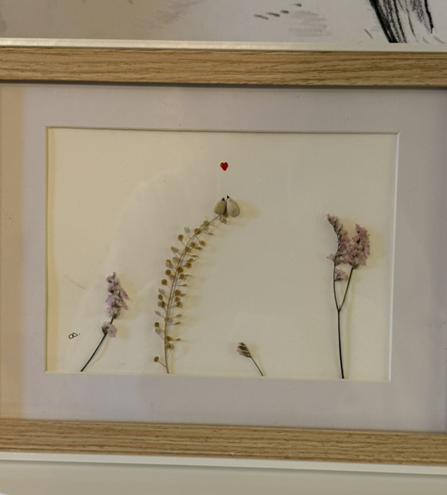 Fleurs séchées de mon jardin et cailloux d’Auxerre.