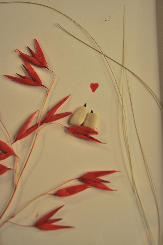 Joli cadre gris clair avec un couple d'oiseaux posé sur cette jolie fleur rouge....