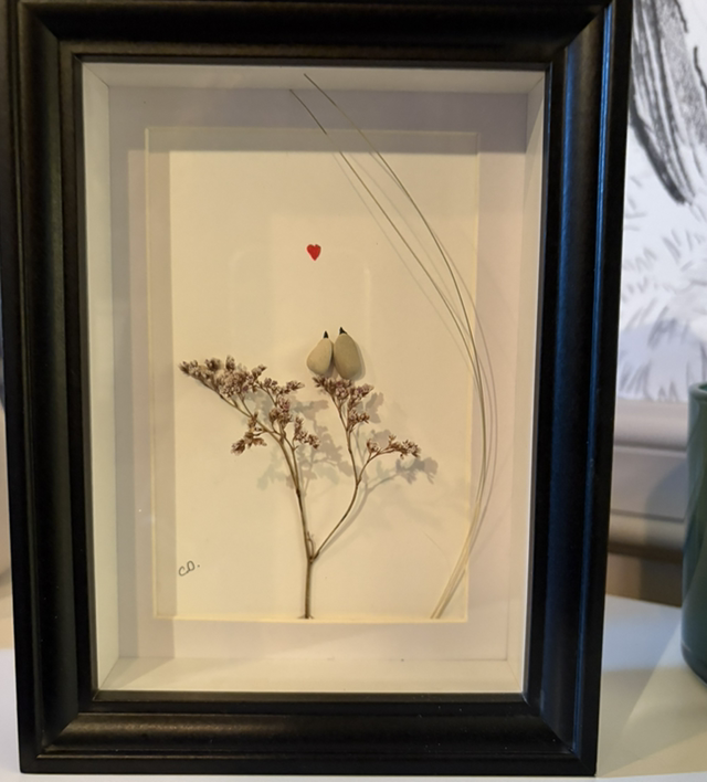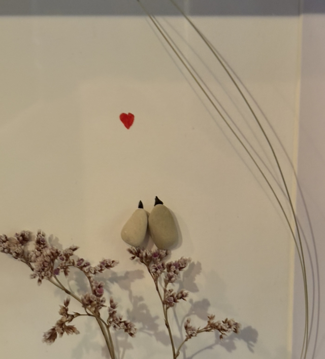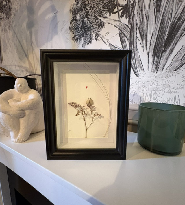 Couple d’amoureux se contant des histoires perchés sur une branche (récupérée dans un bouquet)…